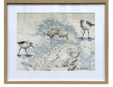 Carte maritime peinte du phare Ar Men & fous de Bassan-