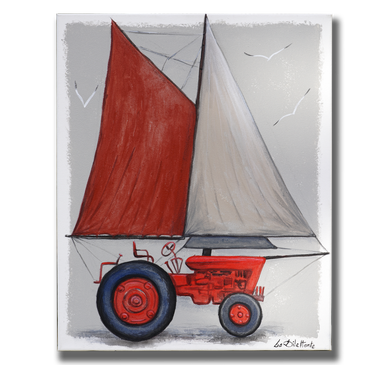 Maquette de voilier peinte sur chassis lin, fond gris-