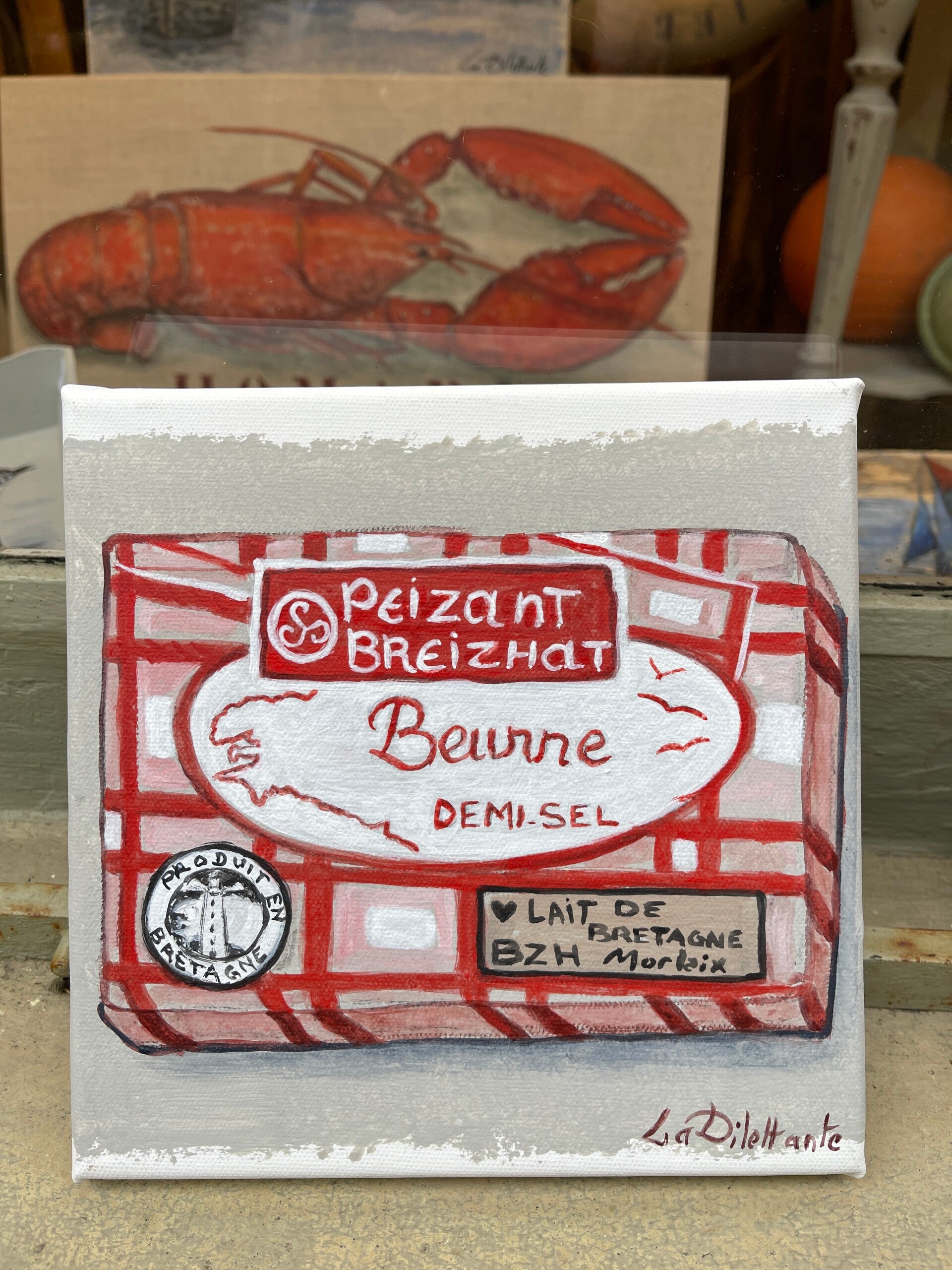 Homard rouge & Lettrage sur chassis en lin-