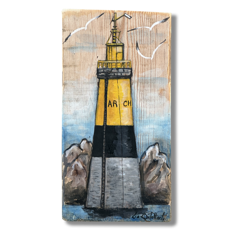 Carte maritime peinte: vieux gréements et phare de l'ile de Batz-